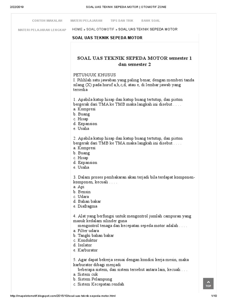 Contoh soal gambar teknik otomotif kelas 10 beserta jawabannya.